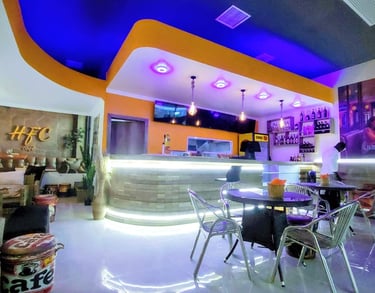 Bem vindo à nossa Galeria! Explore as fotos do HFC Café-bar e descubra o seu novo ponto de encontro em Viana - Vila Pacifica - em Luanda. Aqui, mostramos um pouco do nosso ambiente único, a qualidade dos nossos hamburgueres caseiros, os nosso grelhados, churrascos, e o nosso cantinho de leitura. Venha viver esta experiencia e partilhar a sua própria foto conosco.